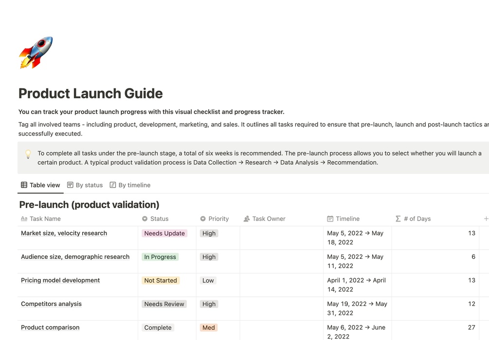 This template is a stage-by-stage checklist and timeline management tool. It outlines all tasks required to ensure that pre-launch, launch and post-launch tactics are successfully executed.